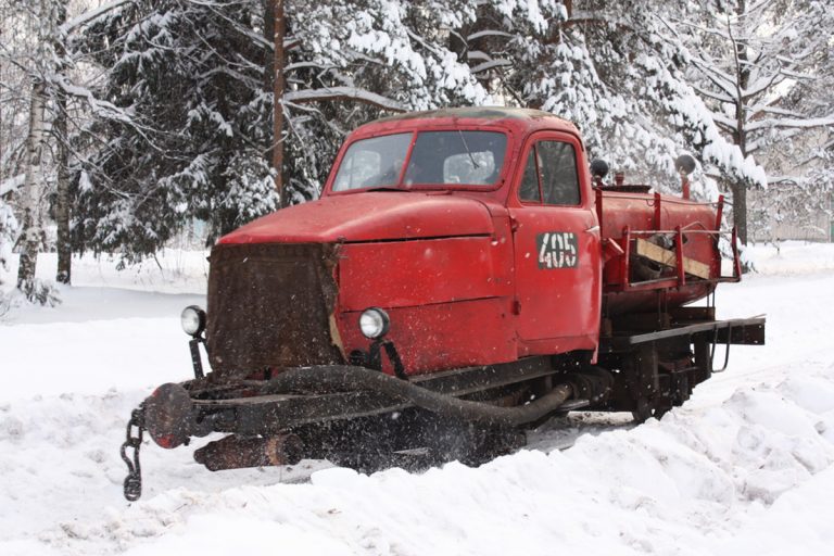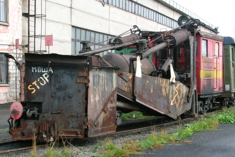 «Классический» плужный двухсторонний узкоколейный снегоочиститель вагонной компоновки производства Камбарского машиностроительного завода.