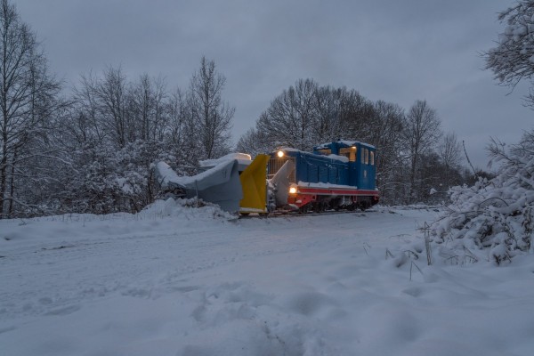 Прицепной плужный двухсторонний узкоколейный снегоочиститель на базе конструкции навесного снегоочистителя ЛД-24 производства Камбарского машиностроительного завода.